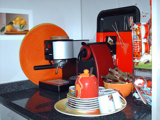 Tirei a TV de um cantinho aqui na cozinha, e coloquei lá as máquinas de café. Entretanto, arranjei logo trabalho para o meu amorzito que resolveu vir espreitar o que eu andava a fazer. Mas a culpa foi dele, porque eu tirei a TV, e ao muda-la de local quando visse que não ligava à tomada voltaria a pô-la no mesmo lugar e esquecia a mudança... mas como ele resolveu vir dar um ar da sua graça, acabou por ter de ir comprar uns chicotes e tomadas de extensão para a dita cuja. Mas assim sempre acabei por fazer aquilo que tinha em mente.