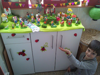Utilizei a mesma técnica que a deste trabalho? Pois bem, fiz tudo igual mas em azul. Quando o meu pequenito a viu quis ficar com ele não no interior do armário mas cá fora.